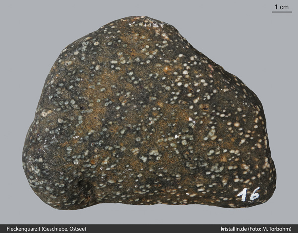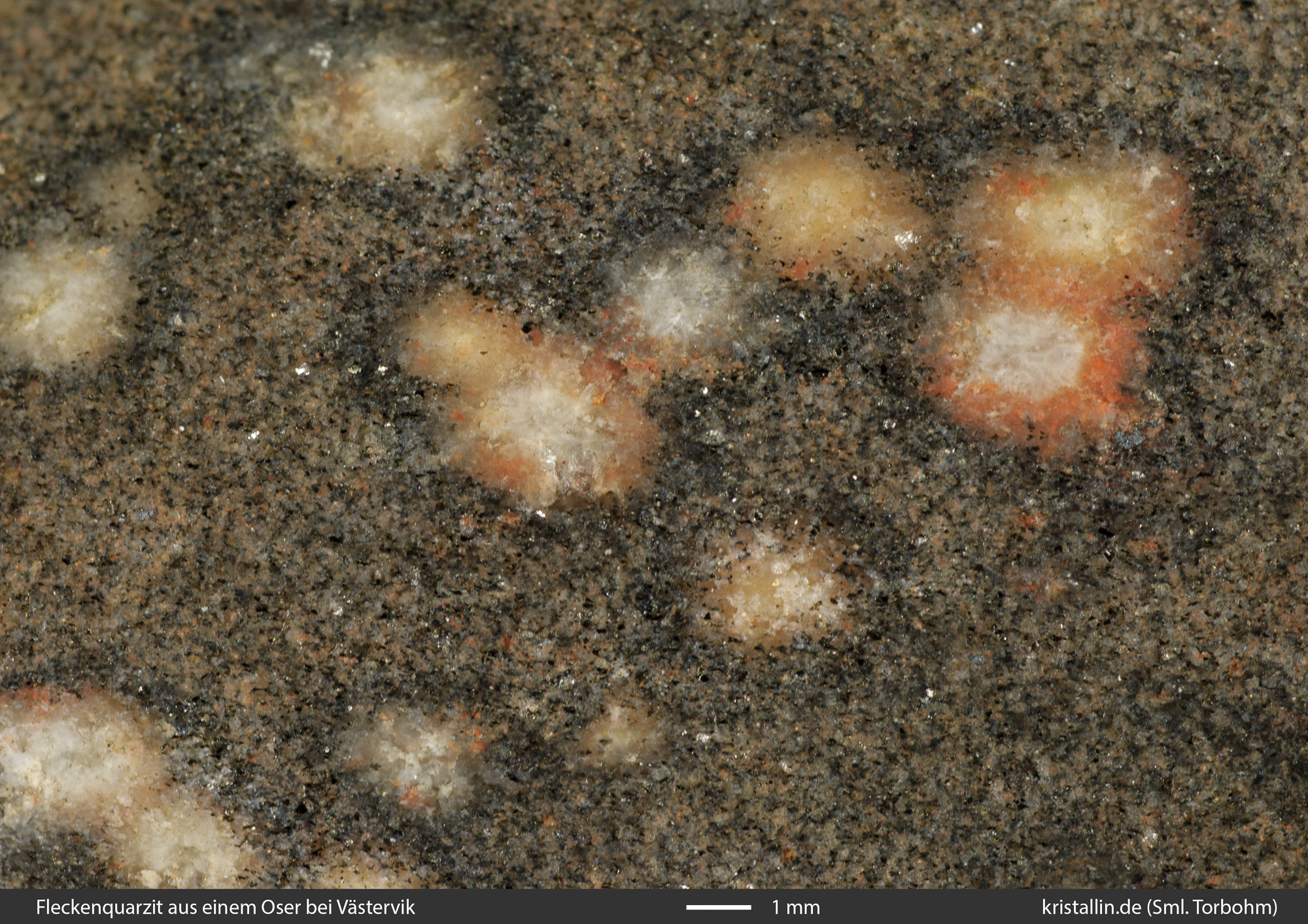 Fleckenquarzite sind feinkörnige metamorphe Gesteine von meist grauer oder brauner Farbe, die viele weiße und runde bis oval geformte Flecken von wenigen Millimetern Durchmesser aufweisen (Abb. 1).