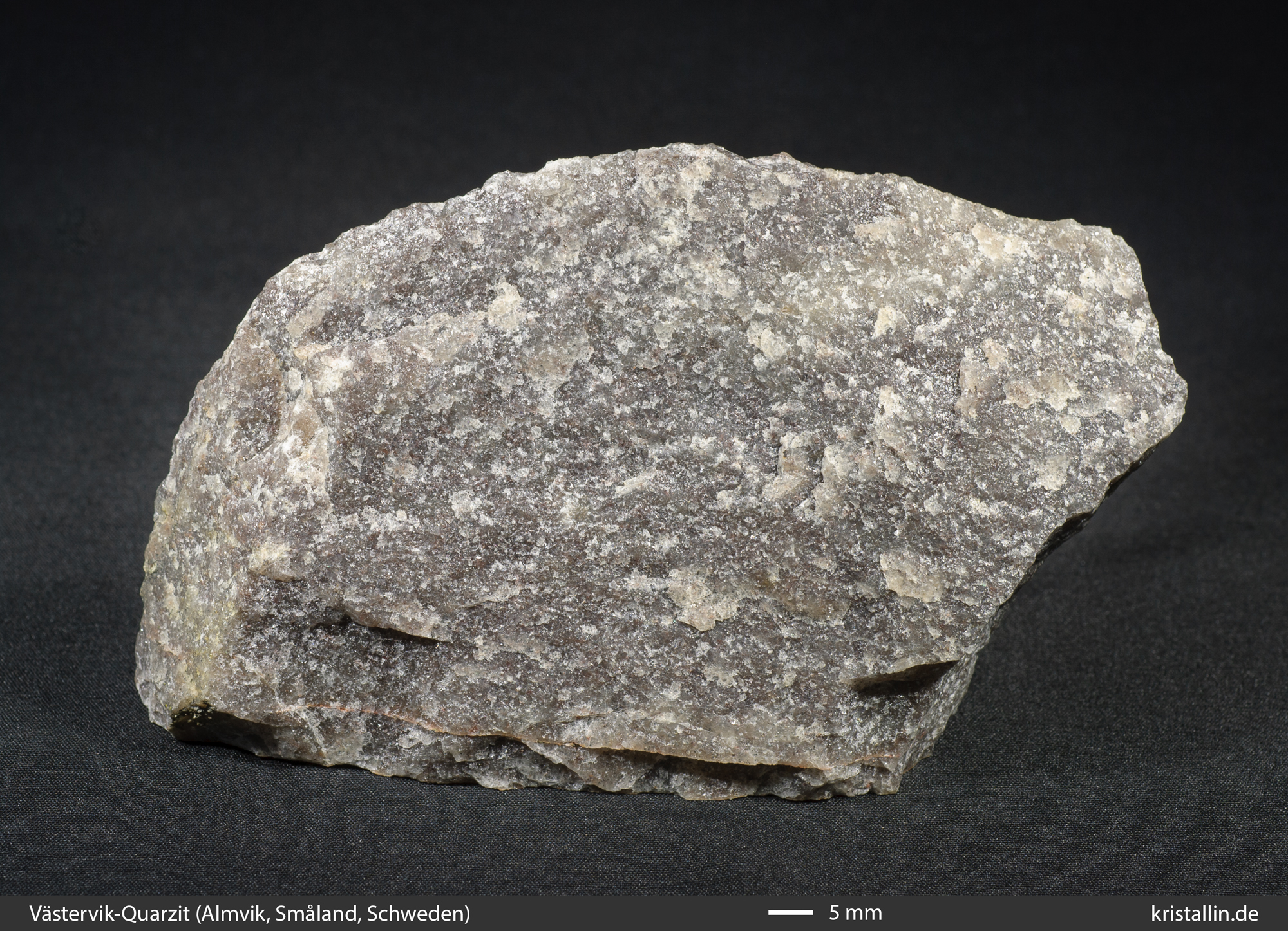 (2/26) Trockene Bruchfläche eines rötlich-grauen Västervik-Quarzits.