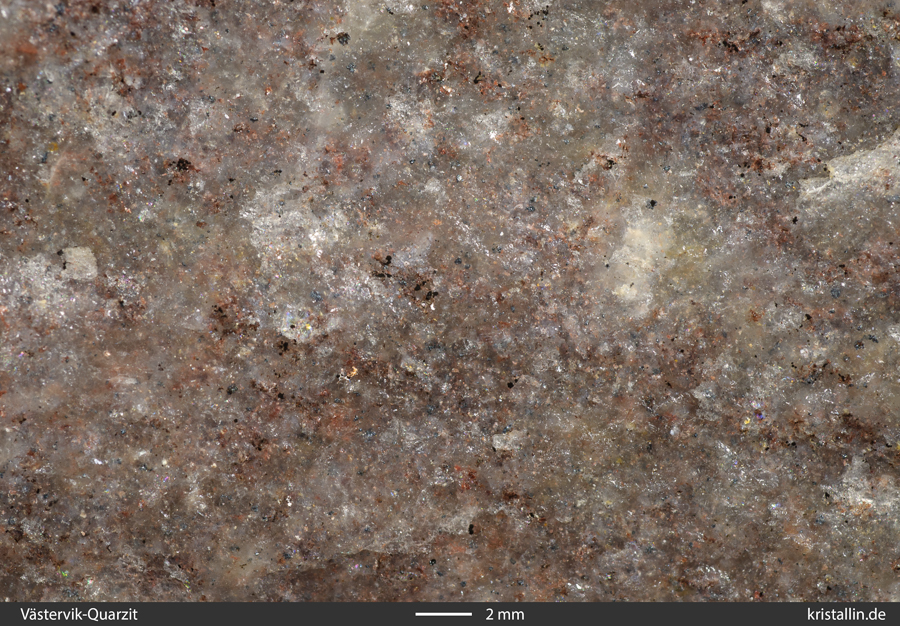 (16/26) Nahaufnahme (nass) des Gefüges mit rötlichen und graublauen Partien.