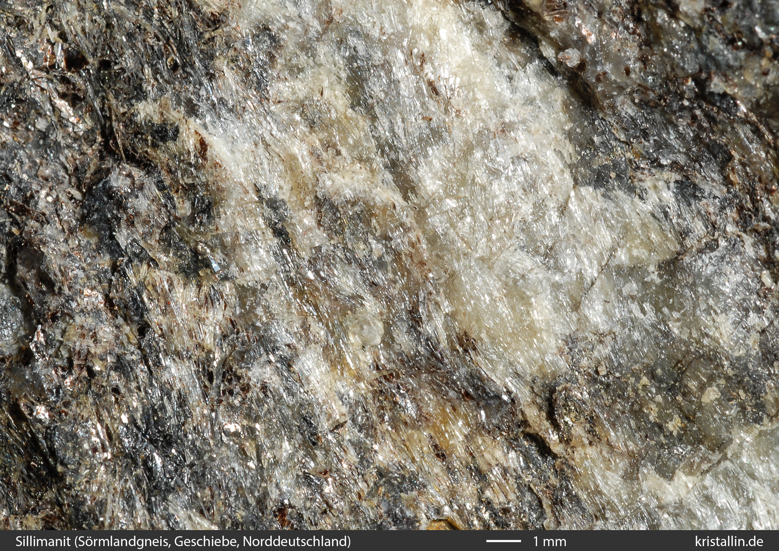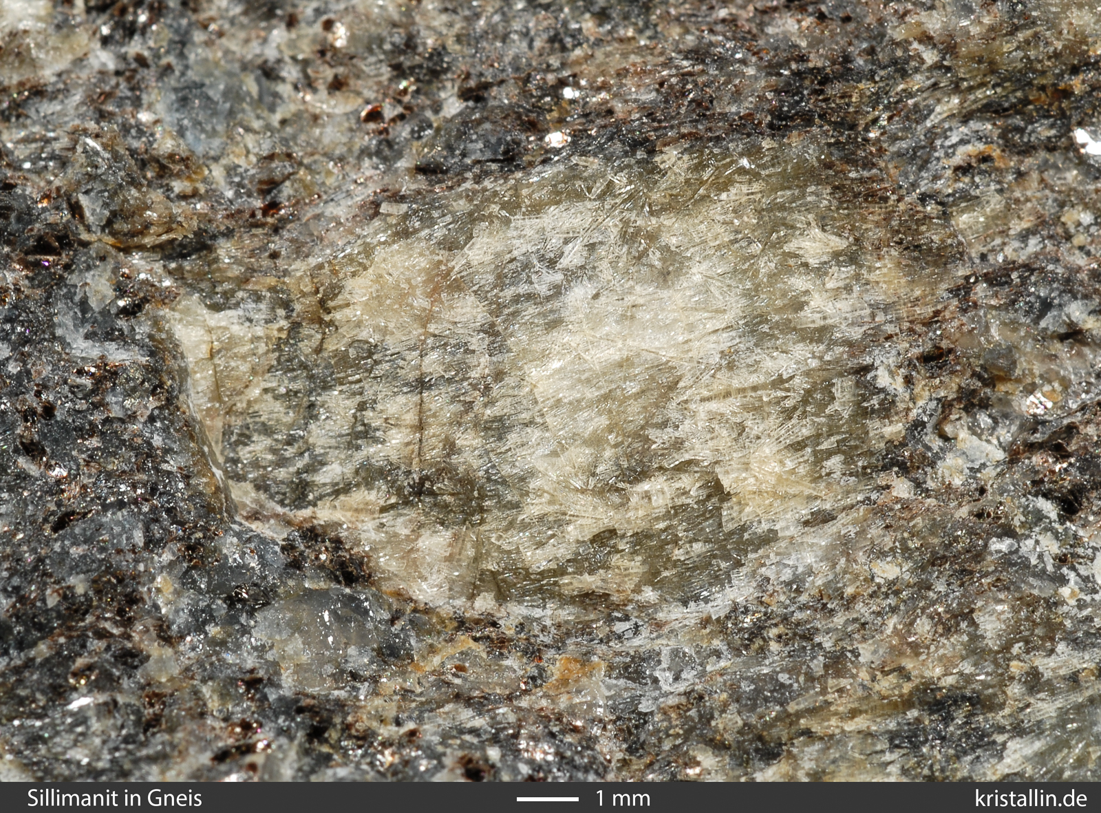 zeigen die winzigen Sillimanitnadeln aus der Nähe.