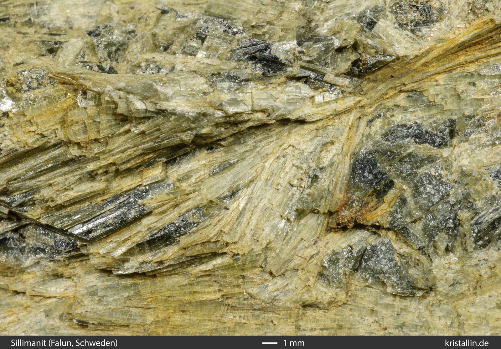 Sillimanitkristallen - so wie oben in den Nahaufnahmen.