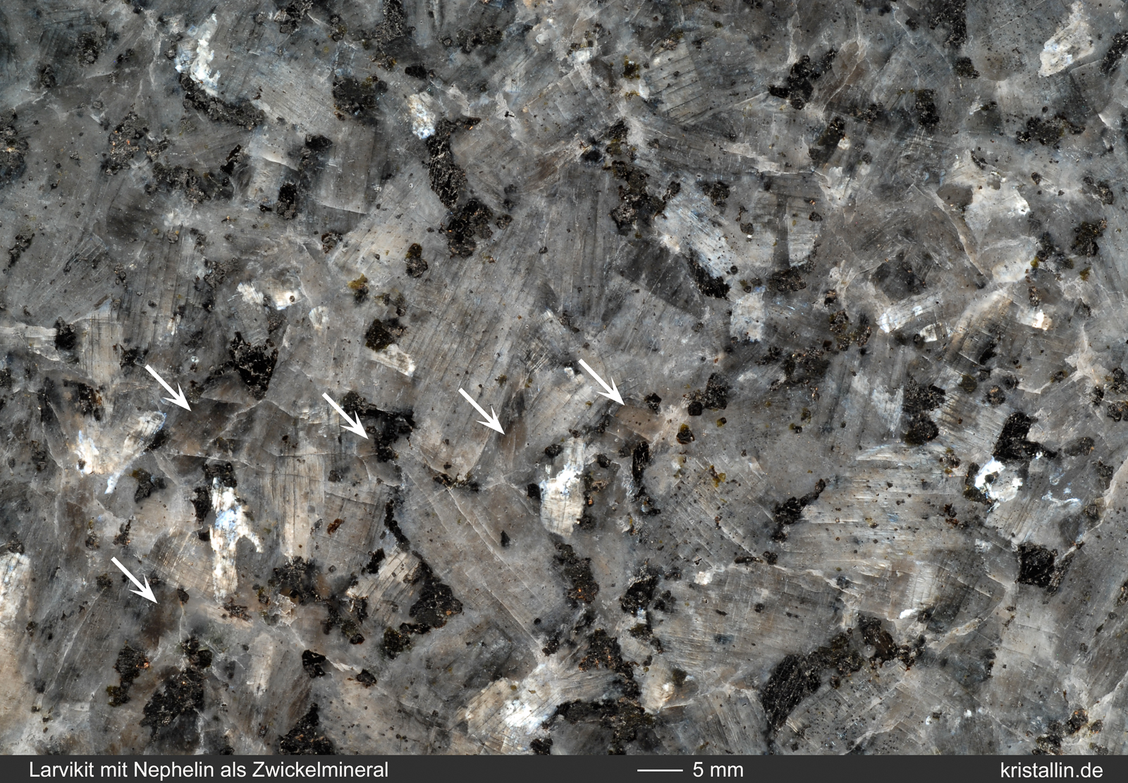 erkennbare Feldspatvertreter vorkommen: Larvikit, Foyait (= Nephelinsyenit),