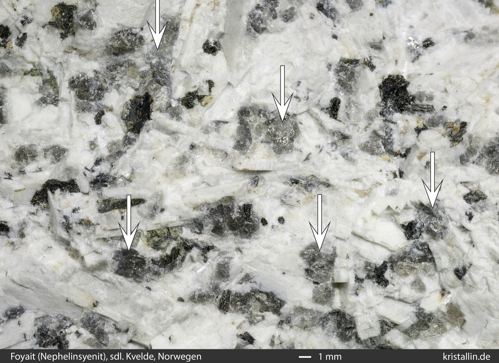Noch seltener sind Foide in grobkörnigen Tiefengesteinen. Die wenigen