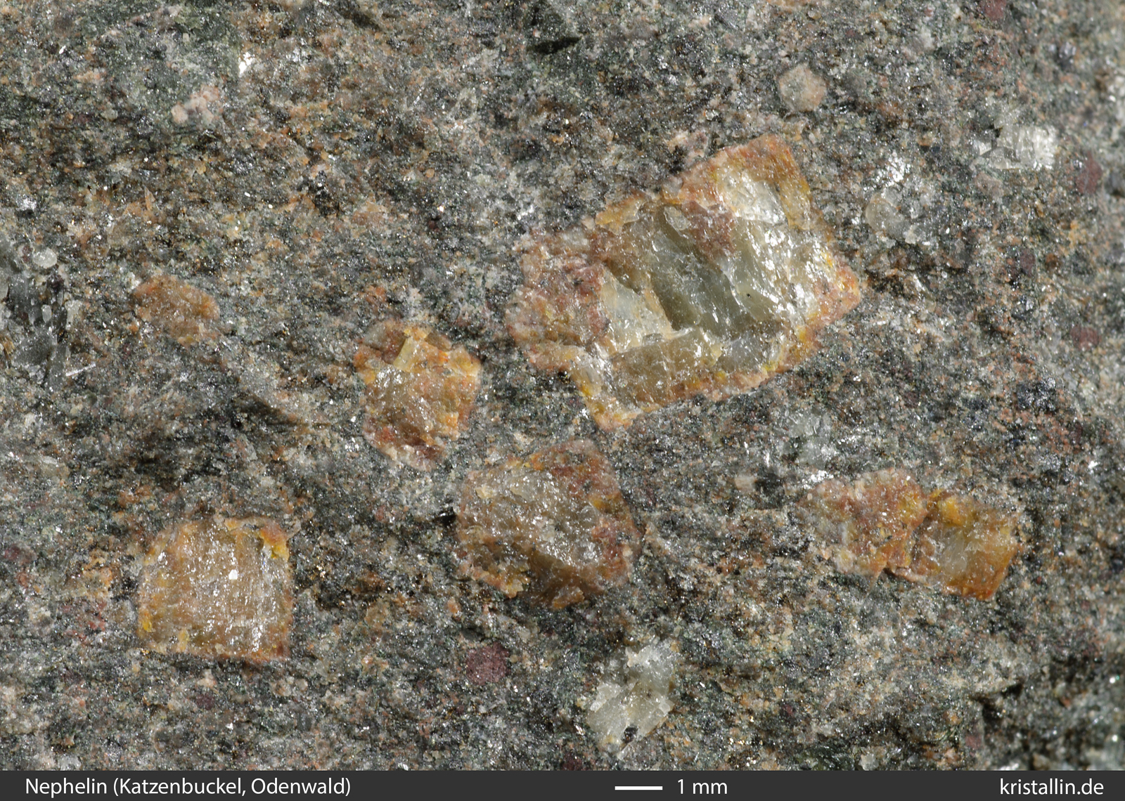 im südlichen Odenwald. Dieser Vulkanit enthält lokal viel Nephelin in Form