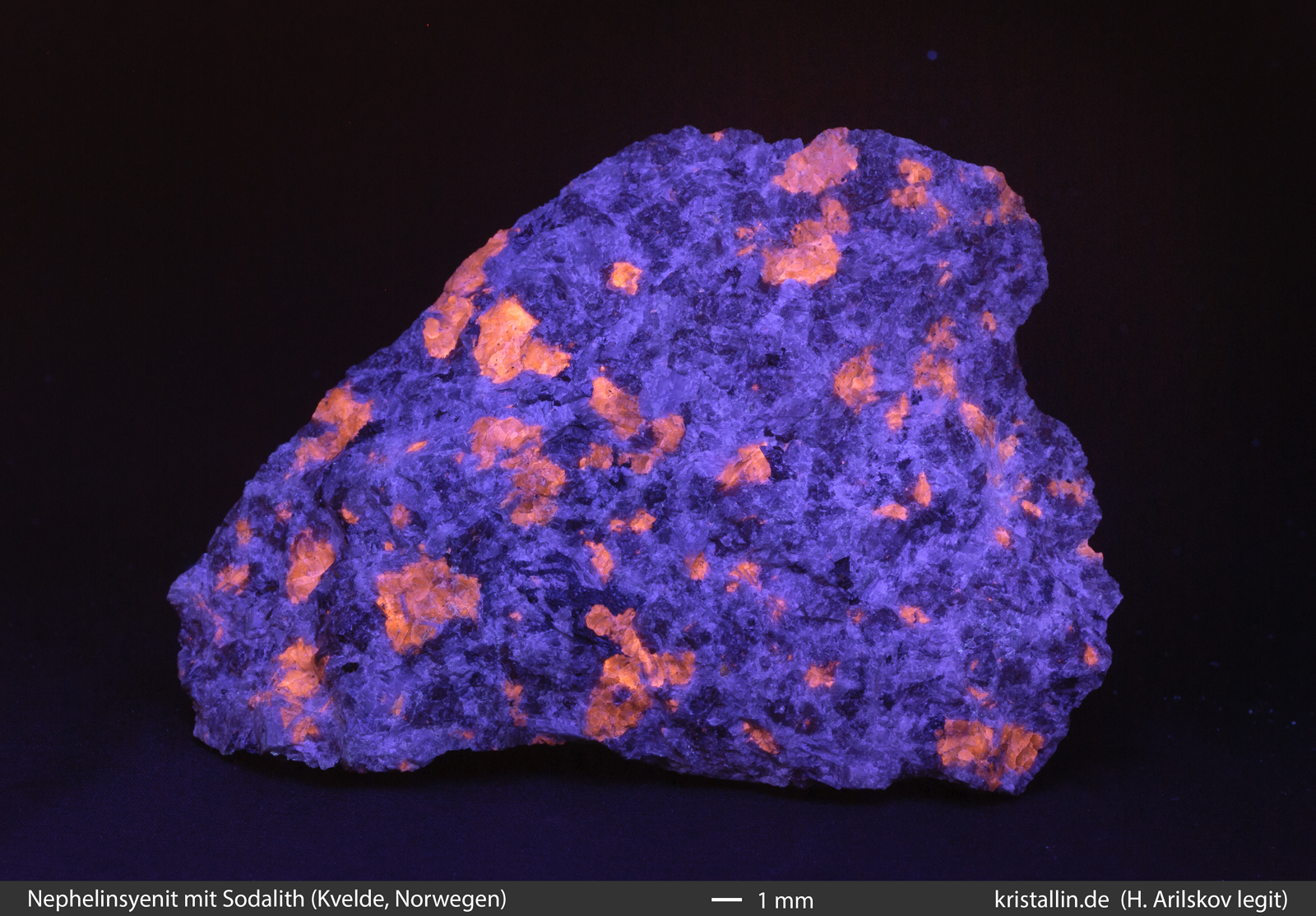 Interessant ist, dass der Sodalith in diesem Gestein nicht fluoresziert. Die