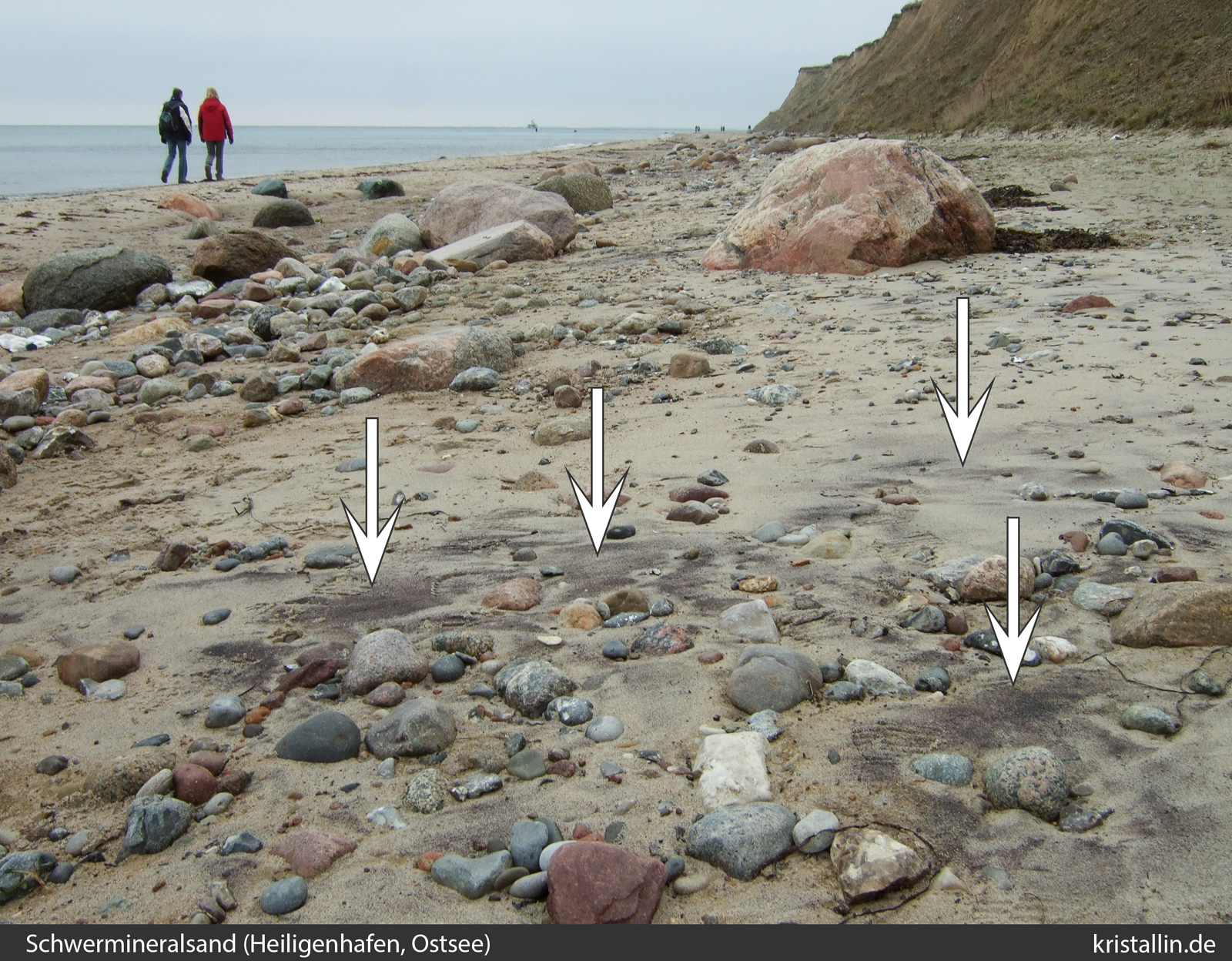 oberen Ende eines Strandes findet. Oben deshalb, weil die schweren Minerale