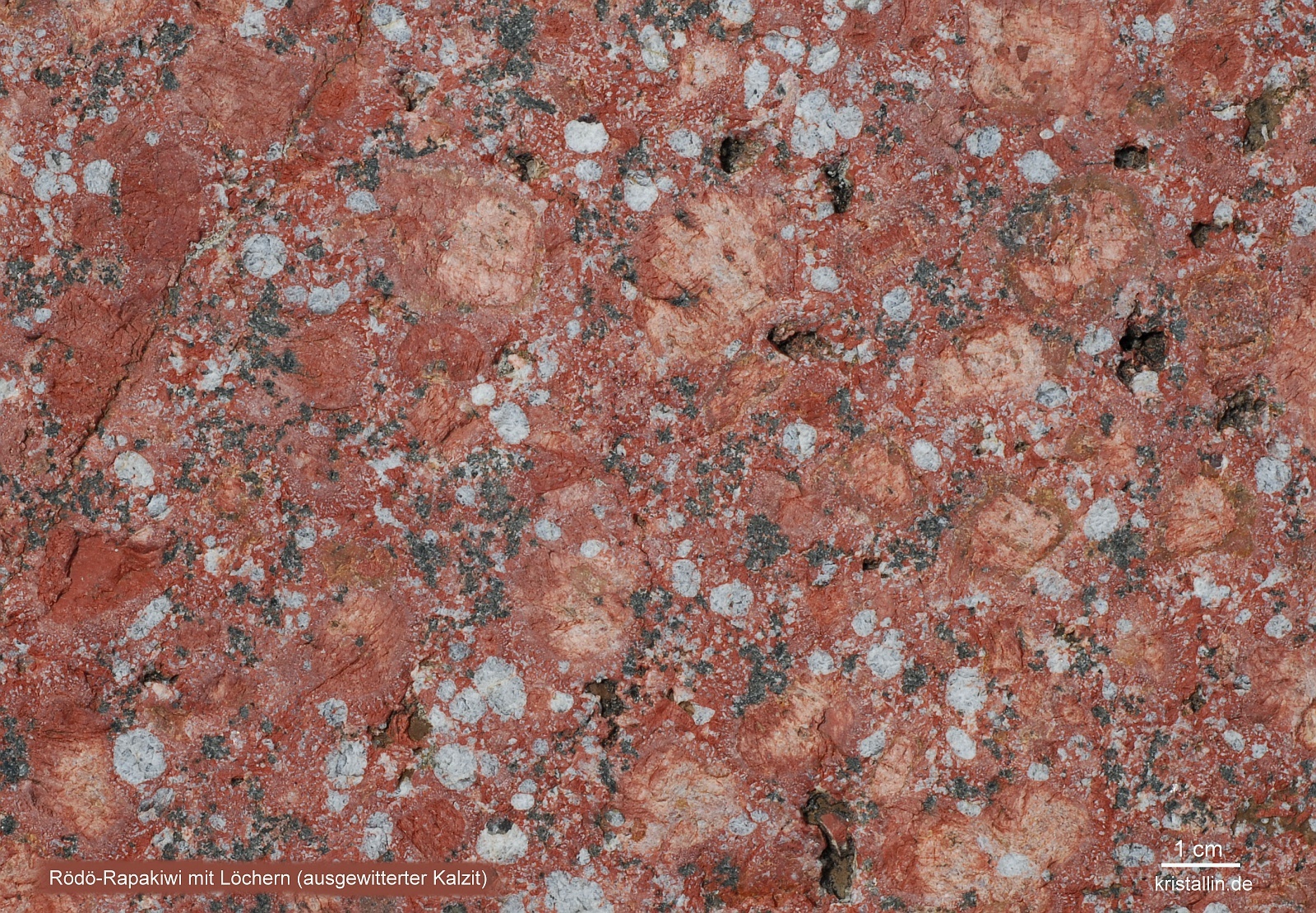 Das Bild unterhalb zeigt einen ehemals kalzitreichen Rödö-Rapakiwi,