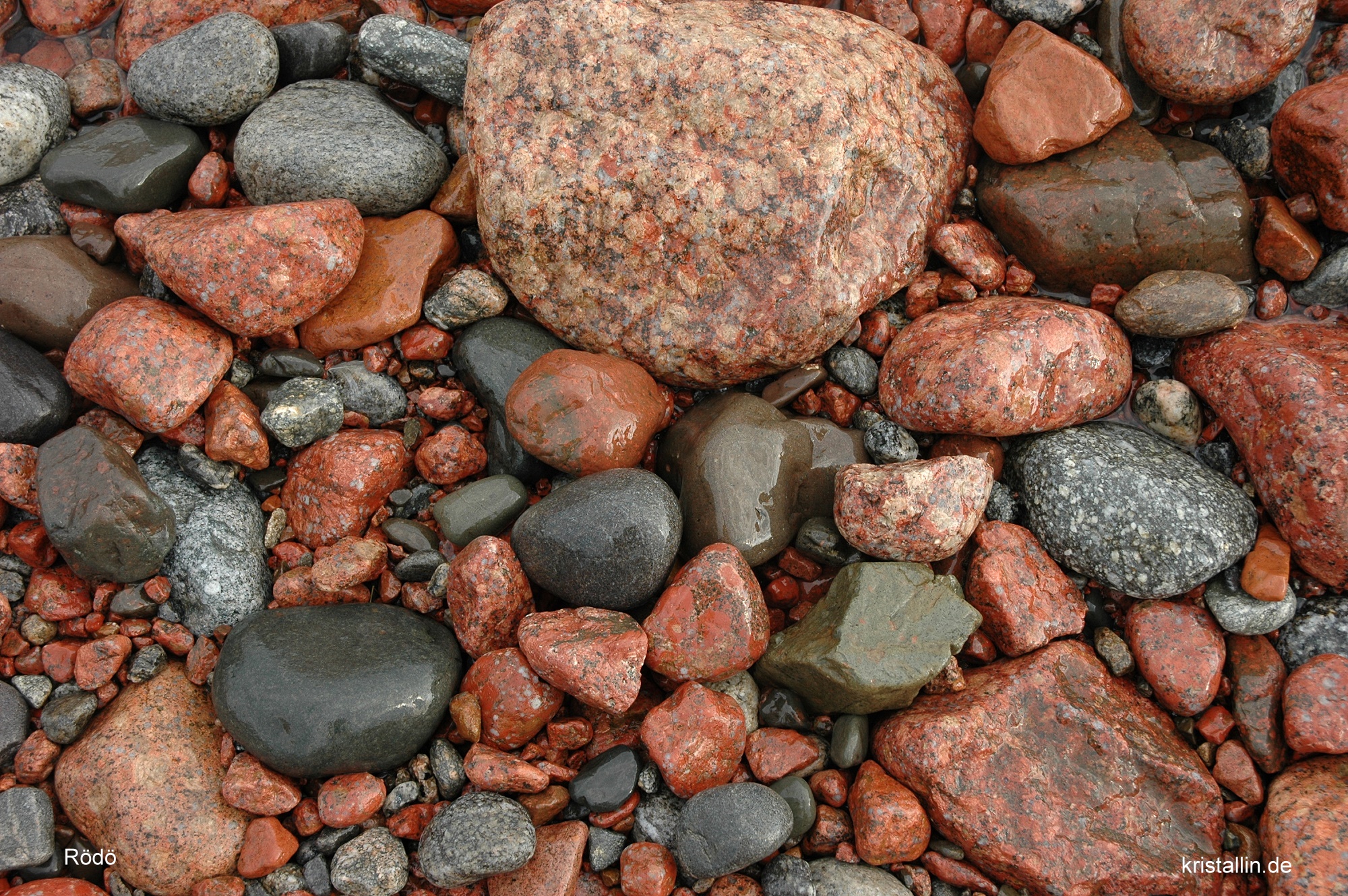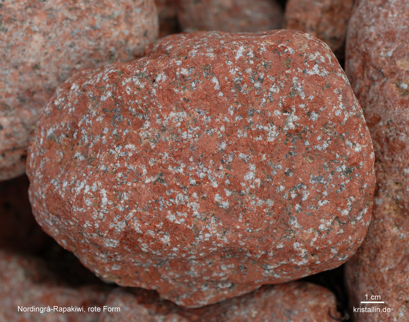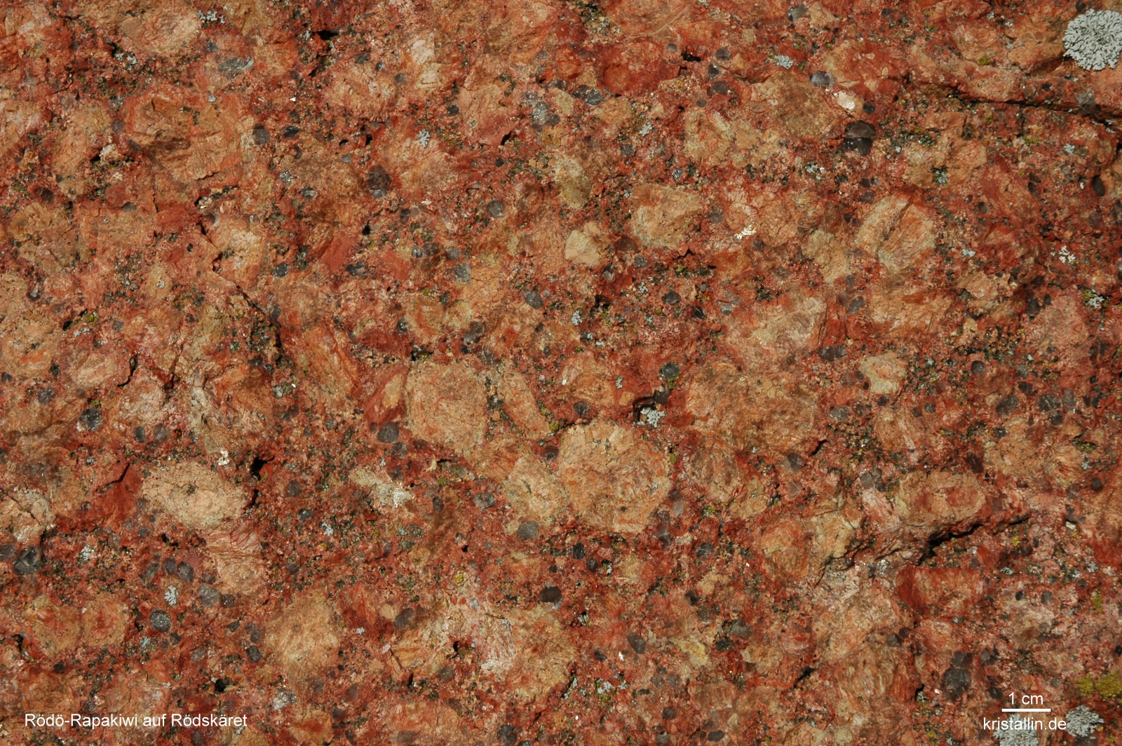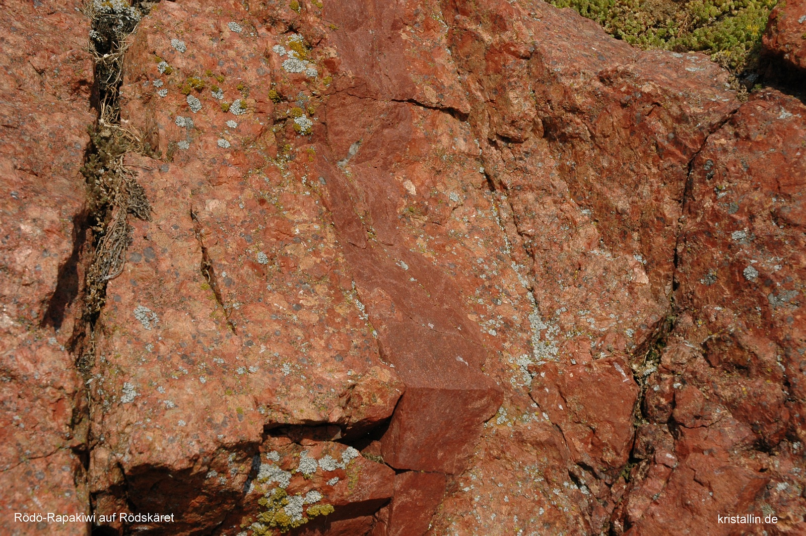 Unten: Ziegelrote Formen des Rödö-Rapakiwis, die nur sehr eingeschränkt als