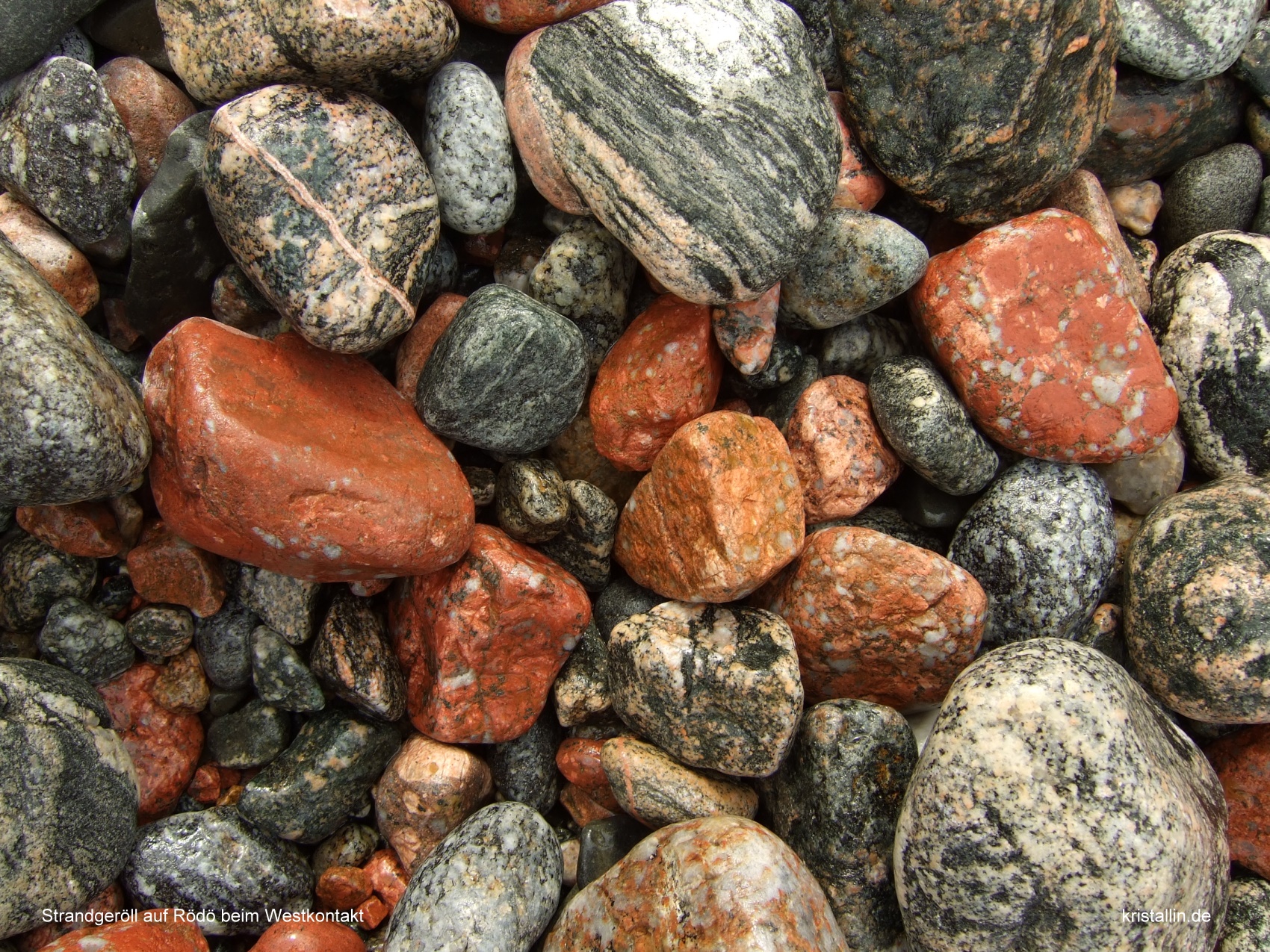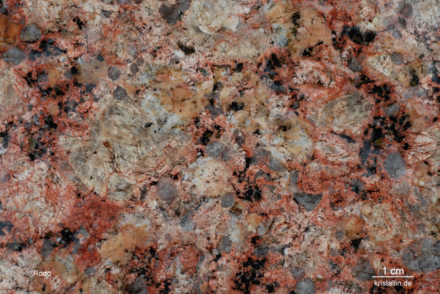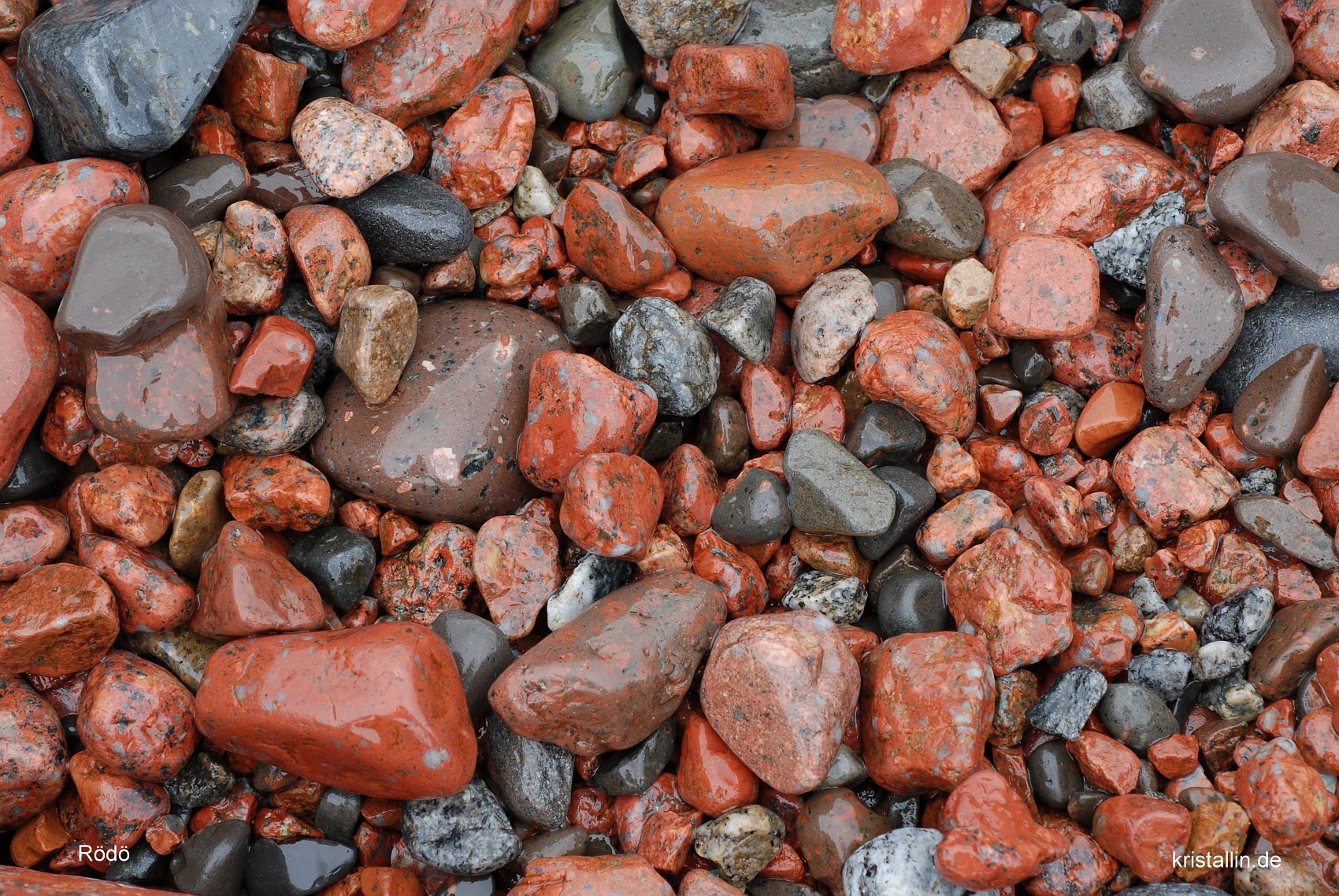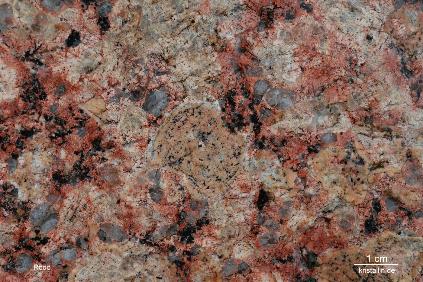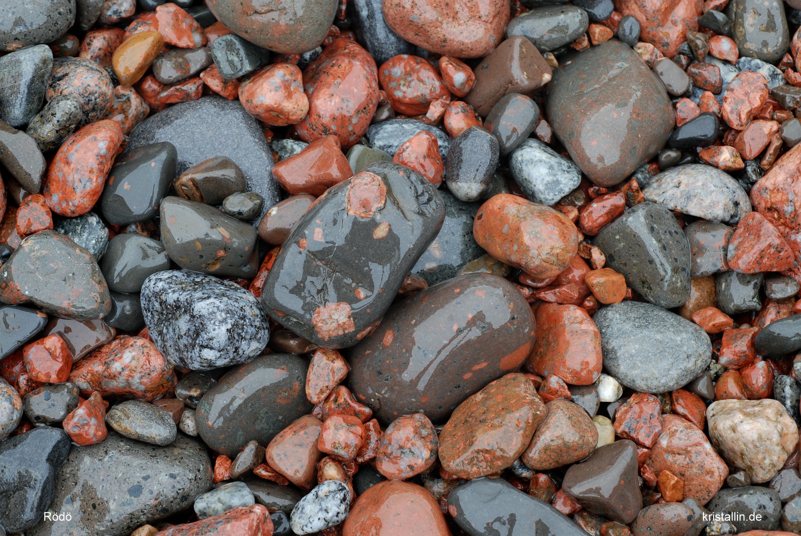 Unten: Ziegelrote Formen des Rödö-Rapakiwis, die nur sehr eingeschränkt als