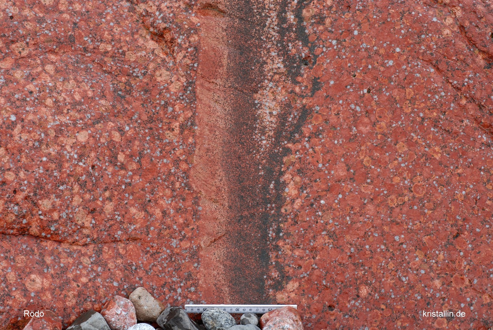 Unterhalb: Porphyraplit im wiborgitischen Rapakiwi.