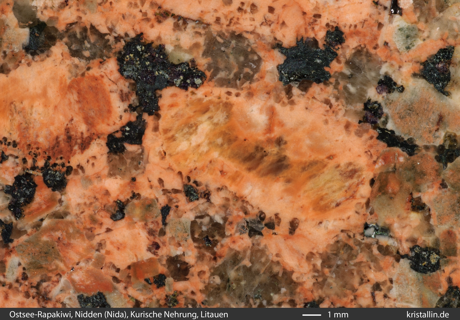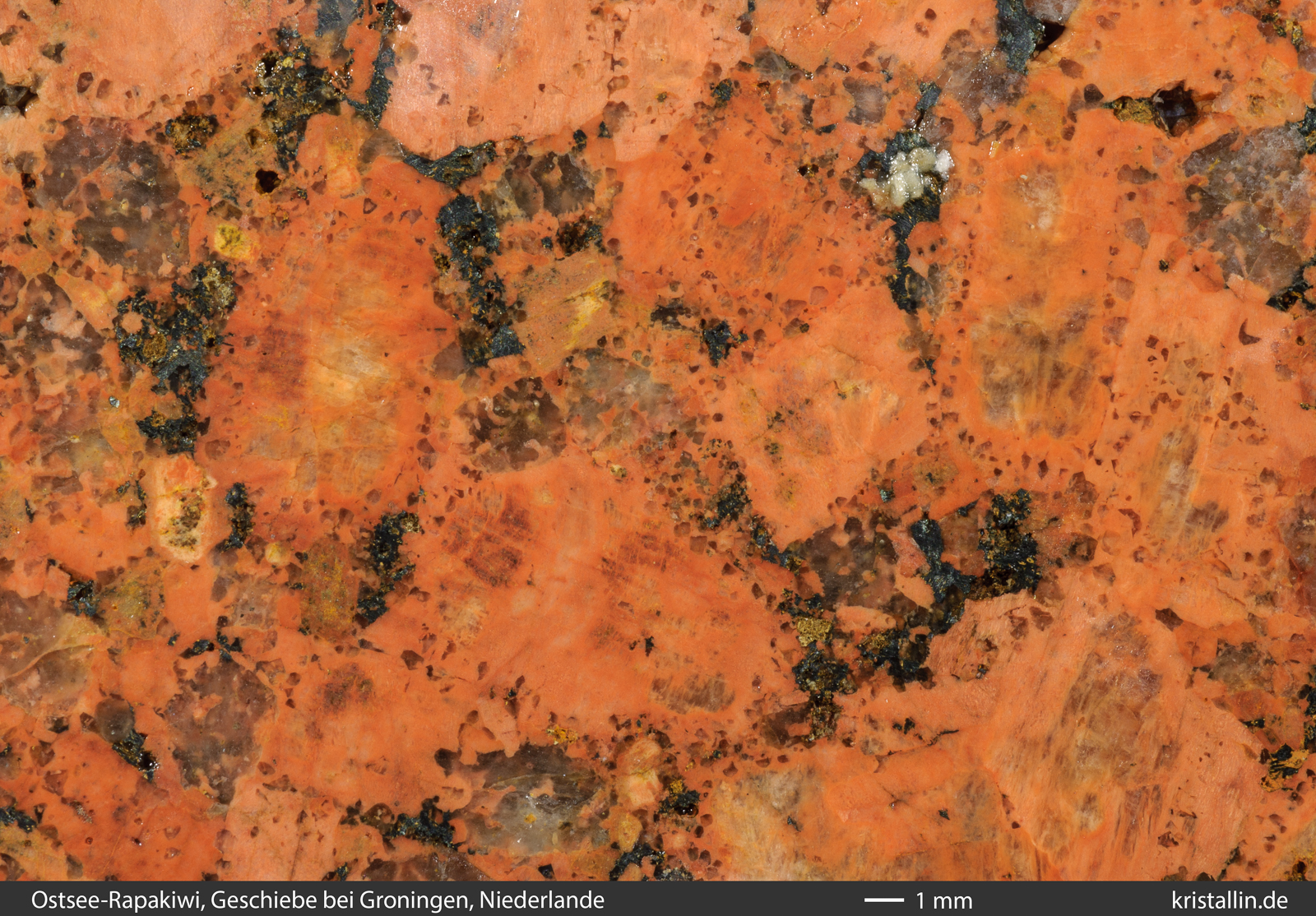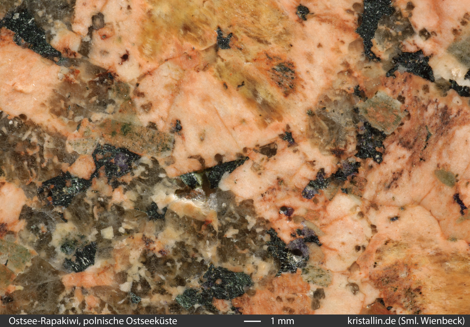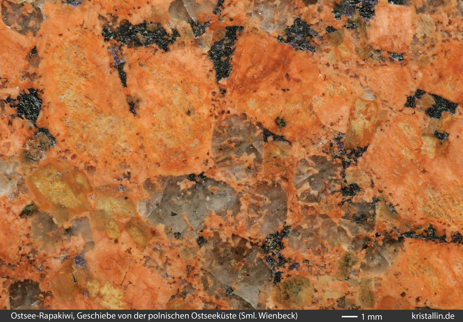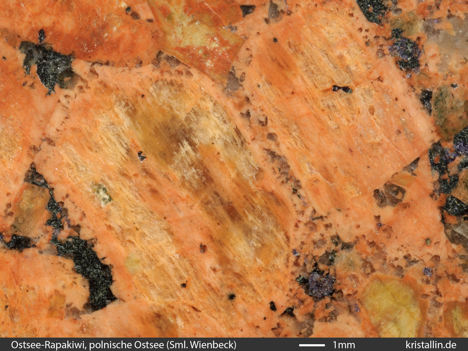 Kennzeichen der Ostsee-Rapakiwis vorhanden. In diesem Stück sind die