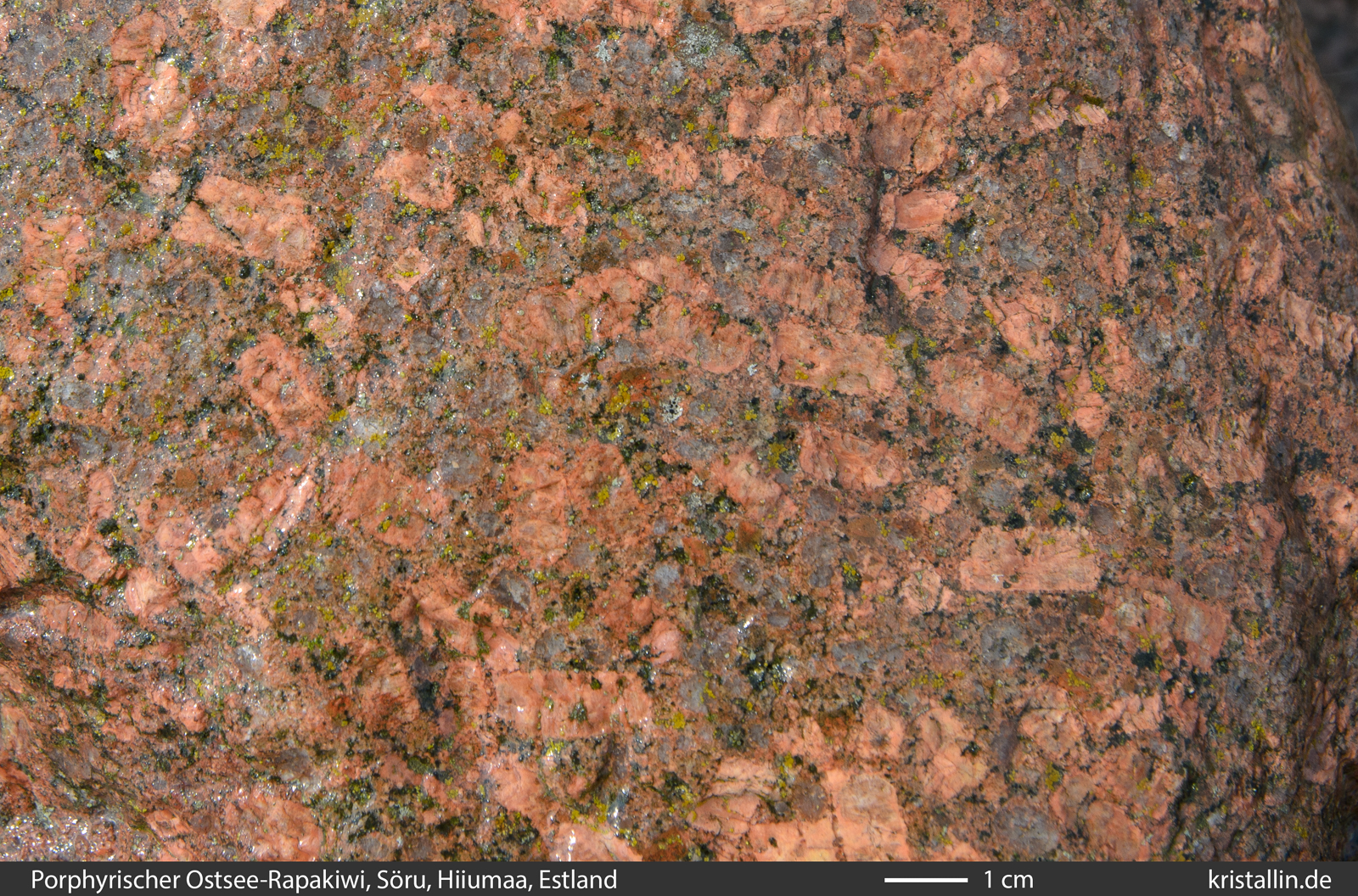 zeigt einen typischen Ostsee-Rapakiwi mit vielen länglich-rechteckigen