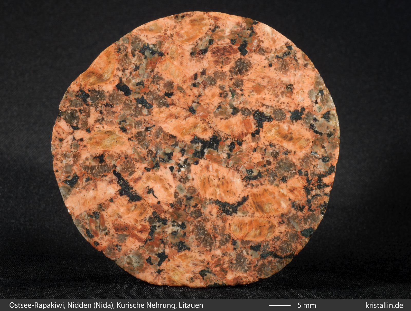 folgende Ostsee-Rapakiwi ist geschnitten und poliert. Er stammt von einem