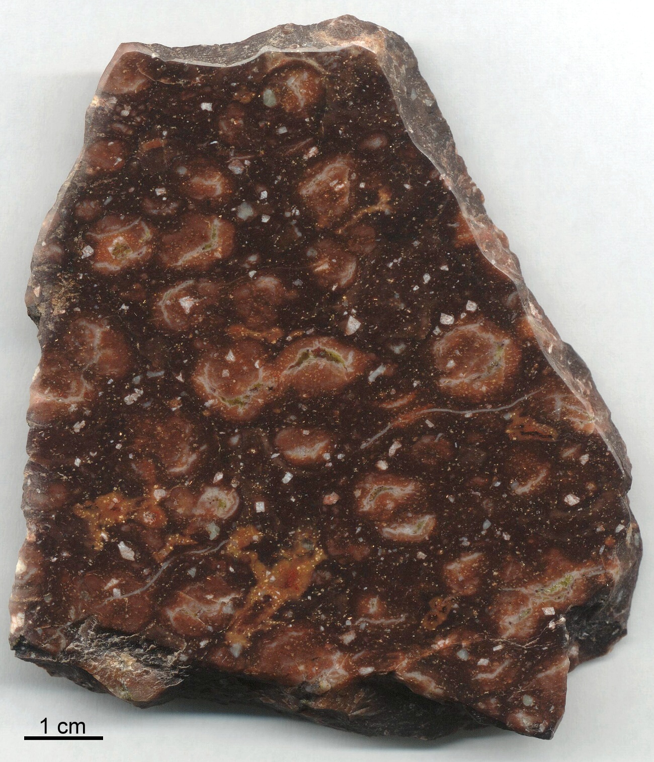 ist es umgekehrt: Die Grundmasse ist heller, die flachgedrückten Fetzen
